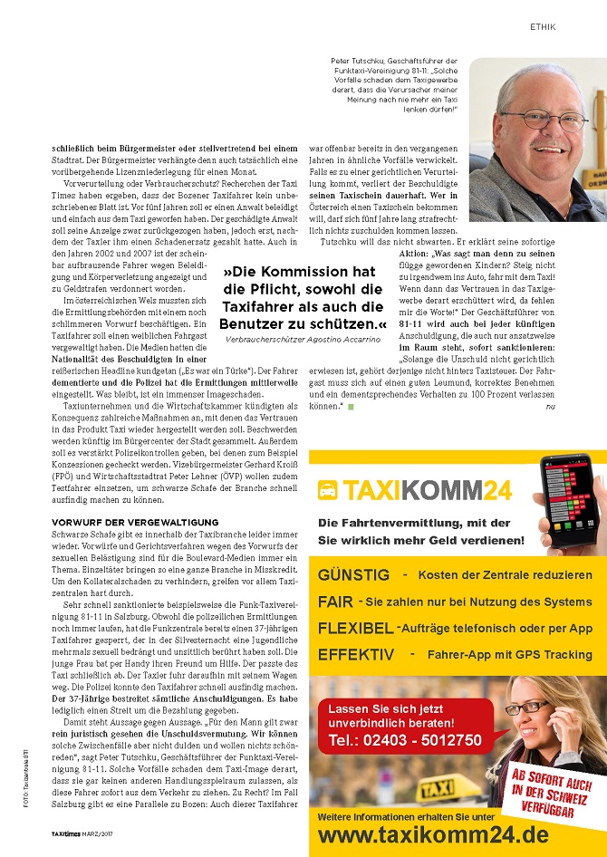 ... (unschuldigen) Taxifahrern berichtet Taxi Times DACH in seiner Ausgabe März 2017.