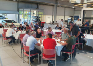 Damit war dann auch schon die Überleitung zu Manuela Fechtner perfekt. Sie war mit ihrem Kollegen und der ‘Urlaubsvertretung” Paul Müller nach Offenburg gereist. Beide stellen die Schnittstelle zwischen den Werkstätten und Autohäusern zum Konzern dar. Obwohl sie nicht im direkten Kontakt mit den Taxiunternehmern stehen, wollte man dennoch gerne einmal zeigen, wo sie, wenn auch im Hintergrund, unterstützend helfen können. Sei es bei der Ersatzteilbeschaffung oder auch bei der Bereitstellung von Ersatzfahrzeugen. Grundsätzlich verstehe man sich als Problemlöser, der durchaus handlungsfähig sei.