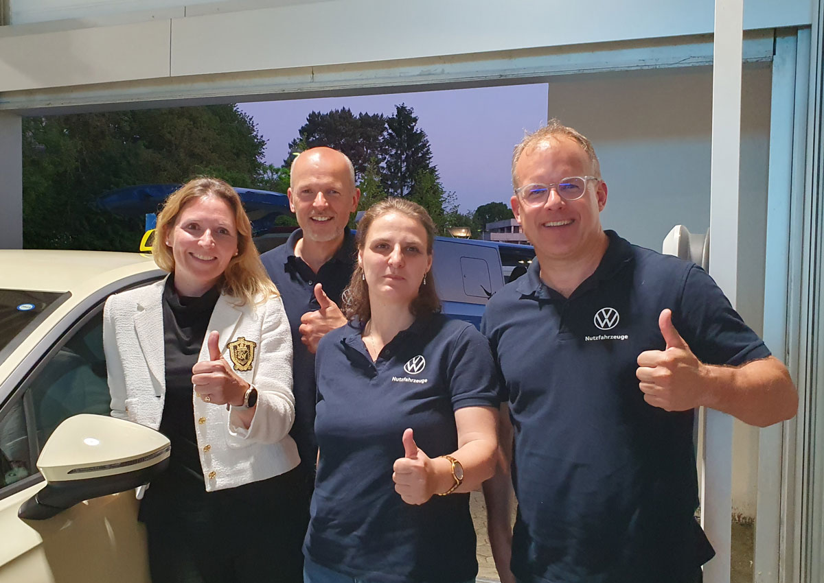 Den zweiten Wagen hatte Melanie Neugebauer von Volkswagen PKW mitgebracht. Der VW ID.7 ist mit einem kompletten Taxipaket ausgestattet und wurde von den Teilnehmern als vollelektrische Alternative zum VW Passat genauestens unter die Lupe genommen.
