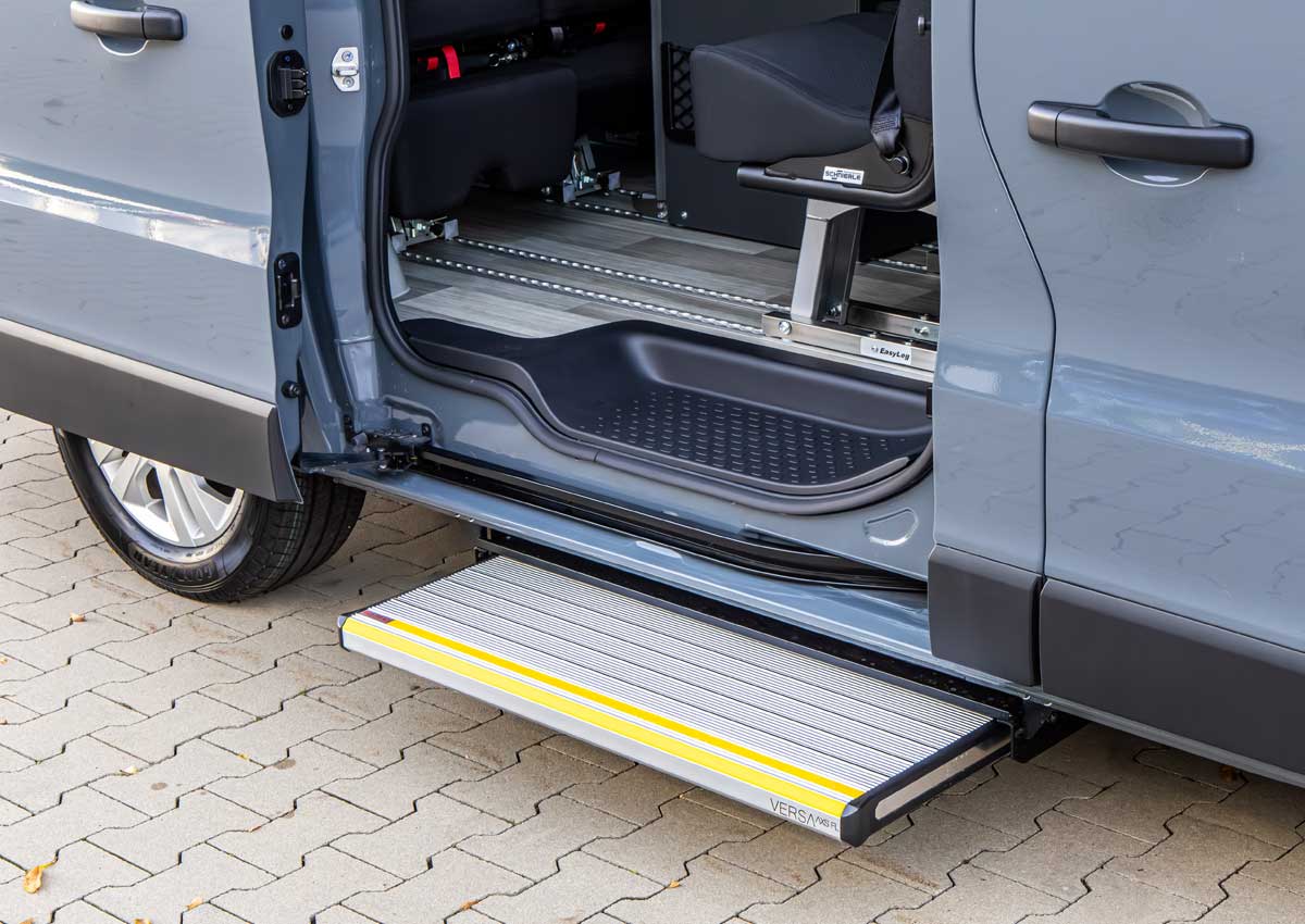 Optional lassen sich Fahrer- und Beifahrersitz ebenso drehen wie die Sitze in der zweiten Reihe. Dort ist dann eine Konferenzanordnung möglich. Dann sind allerdings nur maximal zwei Sitzplätze pro Reihe möglich. Ergänzend ist eine elektrisch ausfahrbare Trittstufe für den vereinfachten Einstieg sowie eine Auffahrrampe oder Rollstuhllift erhältlich. Letztere ermöglichen die Mitnahme eines Rollstuhls auf Höhe der dritten Sitzreihe.