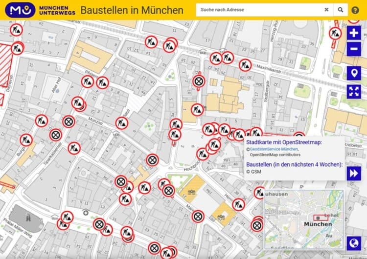 In Kooperation mit den Stadtwerken München und dem Kommunalreferat hat das Münchner Mobilitätsreferat eine digitale Servicekarte mit allen Straßenbaustellen erstellt. Sie ist ab sofort abrufbar.