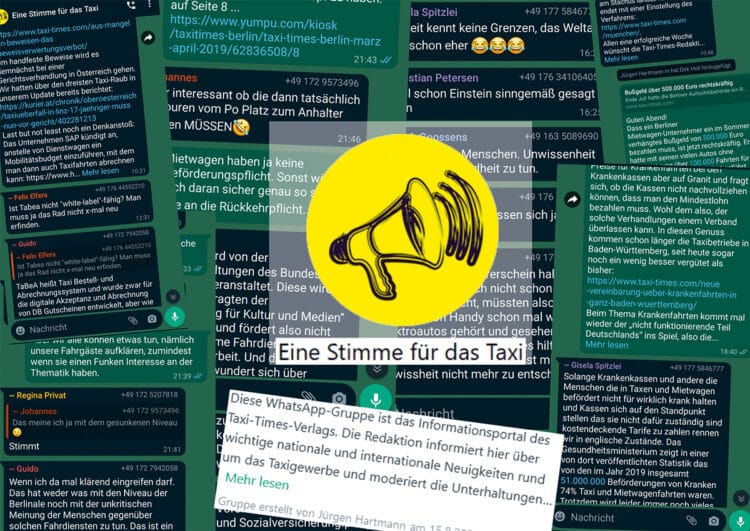 Beitragsbild: Collage aus Screenshots aus der Whatsapp-Gruppe „Eine Stimme für das Taxi“