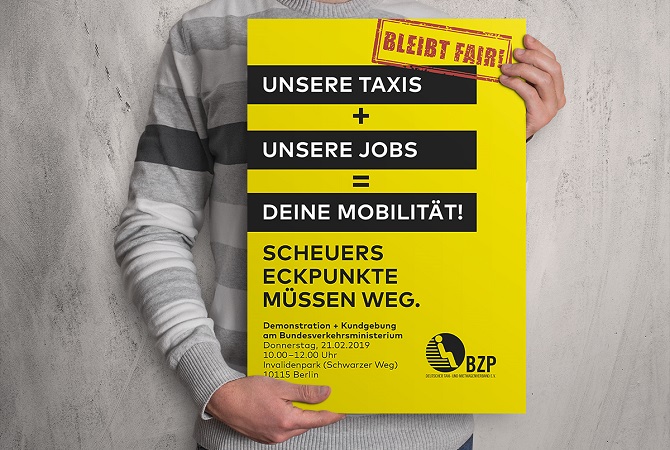 Frankfurt Taksi Çağrı Merkezi sürücülerini mitinge katılmaya ve seslerini yükseltmeye çağırdı. Broşürler, afişler ve bayraklar Hartmann-Ibach-Straße / Rohrbachstraße köşesinde dağıtılacaktır. Gergün, “200 ila 300 meslektaşlarımızla bir araya gelirsek, kesinlikle dikkat çekeceğiz”, diyor. “Protestoya getirebileceğiniz güçlü bir ses, yüksel moral ve Taksi üst lambası. Orada Wiesbaden’de yapmış olduğumuz eylem gibi oradada sesimizi duyurmalıyız.