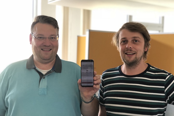 ALT per App: Dirk Holl vom gleichnamigen Taxiunternehmen und Benjamin Schmidt von Metrpopolis geben den Startschuss. Foto Holl AG