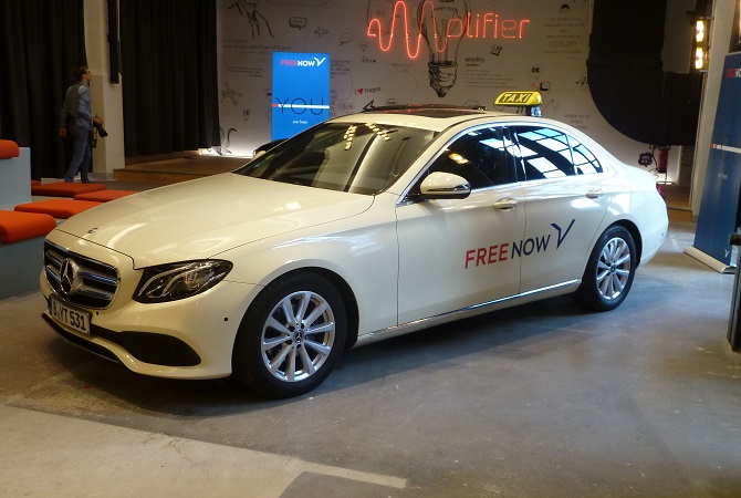 Die Pressekonferenz bei Free Now lieferte auch den optischen Beweis: Wer biswher über mytaxi ein Taxi in Hellelfenbein bestellte, kann künftig auch Mietwagen bestellen. Foto: Hochfeld