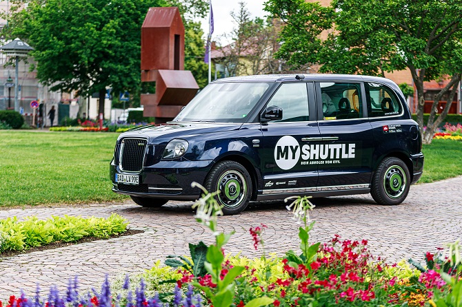 Die Letztgenannten sind aktuell noch als „Moovel“ unterwegs und bringen bei diesem Projekt die Software ein. Holl stellt die Fahrzeuge (drei London-Taxis) und das Personal. Eine Schnittstelle zur FMS-App (taxi.eu) ist nicht vorhanden, in den drei MyShuttles bekommen die Fahrer die Abholadressen über eine separate App übermittelt. Diese Vermittlung läuft automatisiert direkt über die App, über die der Kunde eine Fahrtanfrage von seinem jeweiligen aktuellen Standort zu seinem gewünschten Zielpunkt stellt. Die rund 250 hinterlegten virtuellen Haltestellen beinhalten sämtliche Bushaltestellen in der Kernstadt Ettlingen und viele weitere fest definierte Punkte.