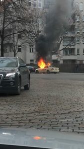 Ein anderer Taxi-Fahrer bemerkte am Montag morgen in Berlin-Neukölln, dass Rauch aus dem Motorraum seines Mercedes aufstieg. Er fuhr sofort rechts ran, kurz danach stand der Mercedes aber schon voll in Flammen. Laut Polizei hatte der Taxilenker noch selbst versucht, das Feuer zu löschen und sich dabei Verletzungen an der Hand zugezogen. Das Auto brannte vollständig aus.