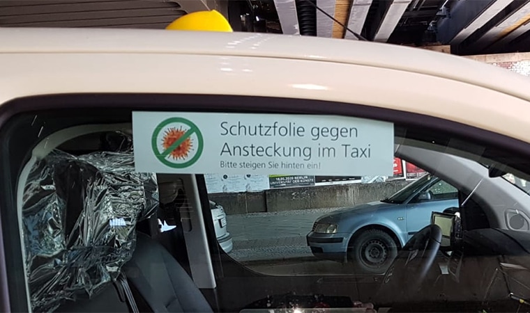Der Unmöglichkeit für Fahrgäste, in öffentlichen Verkehrsmitteln 1,5 oder zwei Meter Abstand zur nächsten Person einzuhalten, sind die Länder mit Ausnahmeregelungen begegnet. Taxiunternehmer haben frühzeitig begonnen, Vordersitze und Rückbank voneinander durch teils kreative Tröpfchenschutz-Konstruktionen voneinander abzutrennen. In einer exklusiven Übersicht listet Taxi Times jene Taxi- und Mietwagenunternehmen auf, die über solche Schutzvorrichtungen verfügen. Mit freundlichen Hinweisschildern werden Fahrgäste vielerorts darum gebeten, ausschließlich auf der Rückbank Platz zu nehmen – kein Problem, so lange es höchstens drei Personen sind. Was aber, wenn es vier sind, oder wenn ein einzelner Passagier auf seinem Recht zur freien Platzwahl besteht?