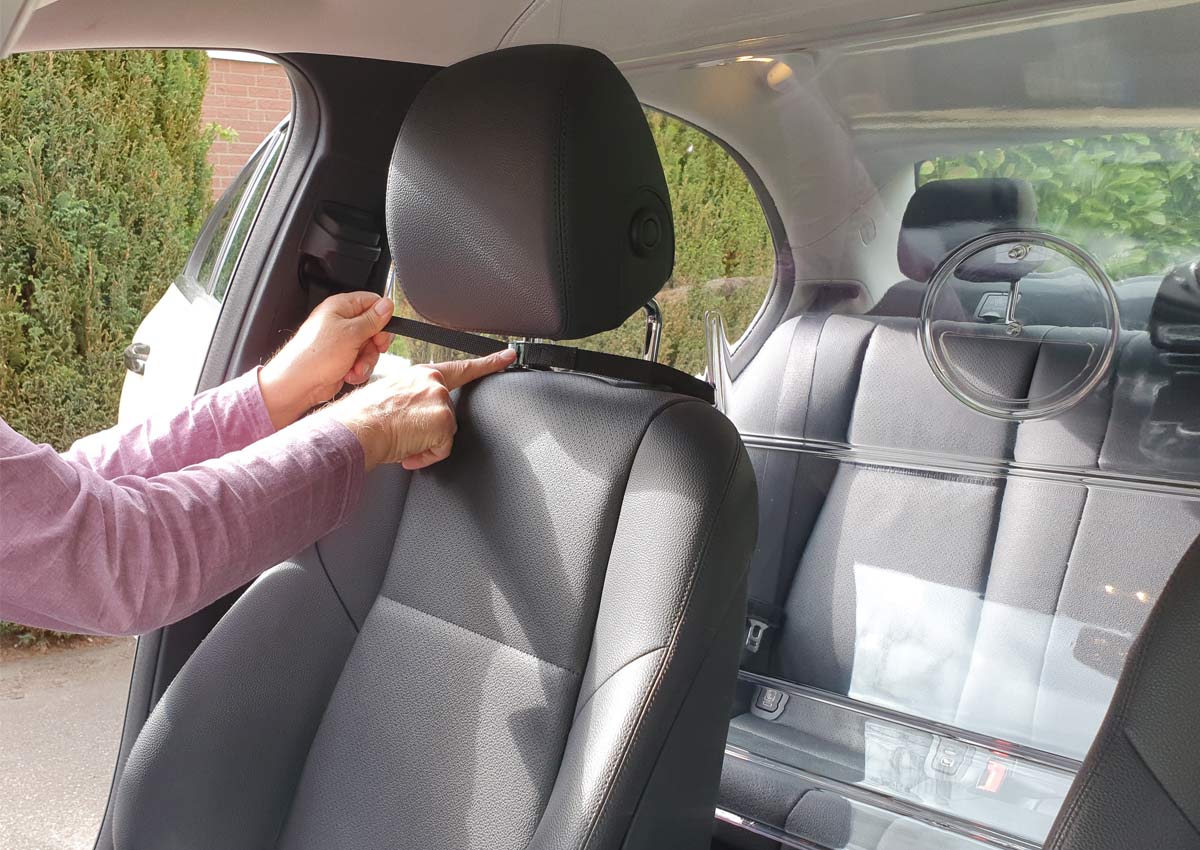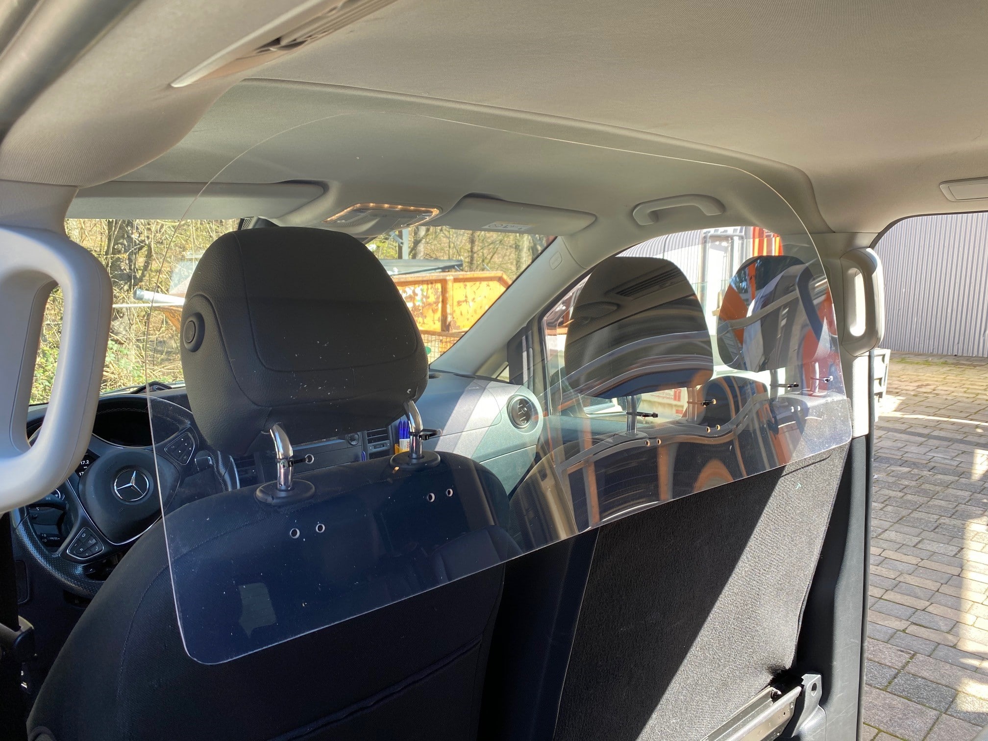 27.3.2020: In Baden-Württemberg hat das Unternehmen Taxi Schoch eine Trennwand aus Polycarbonat entwickelt. Die 3 mm starke Trennscheibe wird mit Kabelbindern über Doppelreihen-Bohrungen an den Kopfstützen fixiert und kann auch für die zweite und dritte Sitzreihe angeboten werden. Weiterhin wird ein Datenblatt mitgeliefert, welches als Nachweis für den TÜV dienen soll. Nach eigenen Angaben sind deutschlandweit bereits über 700 Taxis mit dem Trennschutz aus Fellbach ausgestattet worden. Die Scheibe wird für 129,90 Euro inklusive Mehrwertsteuer und bundesweitem Versand angeboten und kann innerhalb von drei Tagen geliefert werden. Das nachfolgende Video zeigt eine Befestigungsanleitung. Kontakt: [email protected]