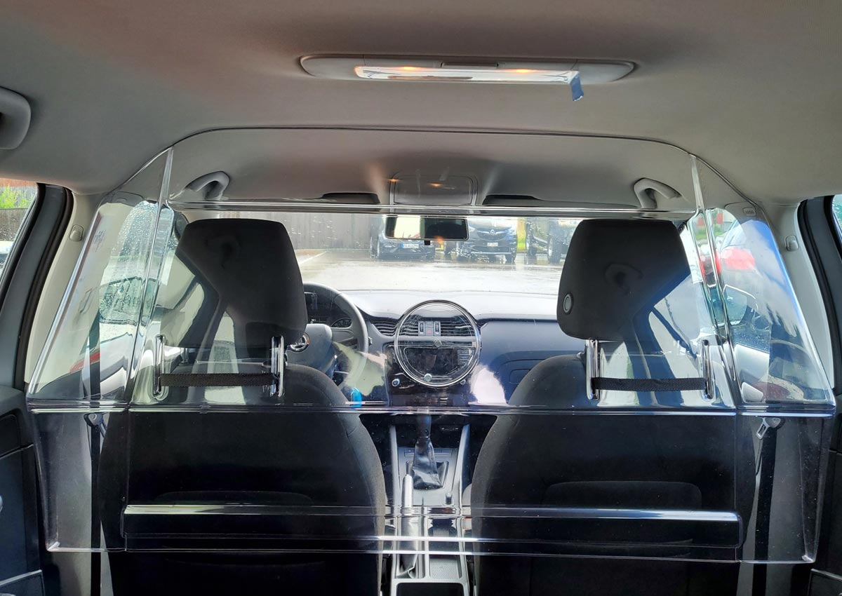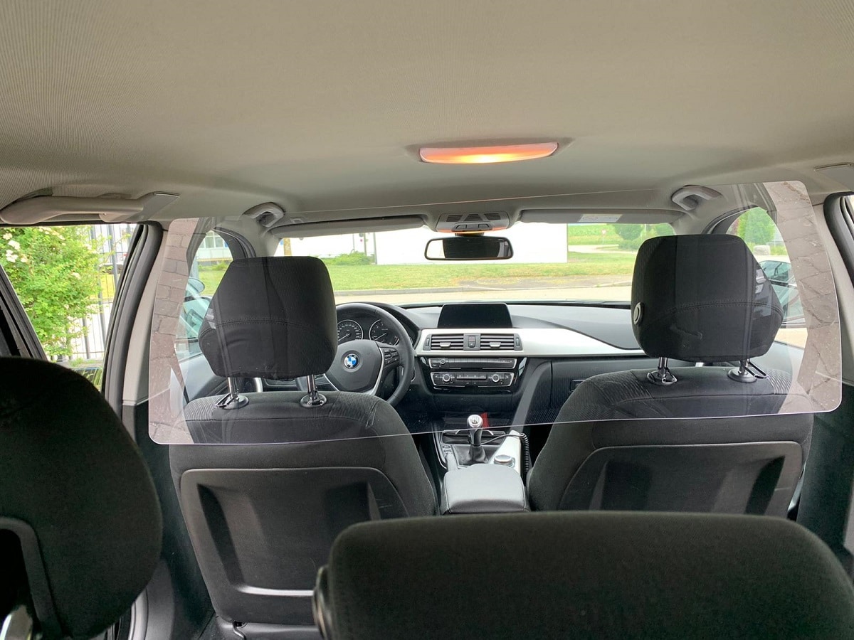 8.4.2020: Die Atelier Damböck Messebau GmbH hat Ihr Angebot um eine zweiteilige Taxi-Trennwand aufgestockt. Sie ist aus Polycarbonat gefertigt und wird mit einer zweiteiligen Holzhalterung an den Kopfstützen fixiert. Durch den zweiteiligen, überlappenden Aufbau sollen die vorderen Sitze bis zu einem gewissen Grad verstellbar sein. Die Trennscheiben werden für 129,- Euro netto zuzüglich Versand angeboten. Eine Abholung in Neufinsing ist ebenfalls möglich. Gegen Aufpreis bietet Atelier Damböck die Möglichkeit der individuellen Beschriftung an. Kontakt: [email protected]
