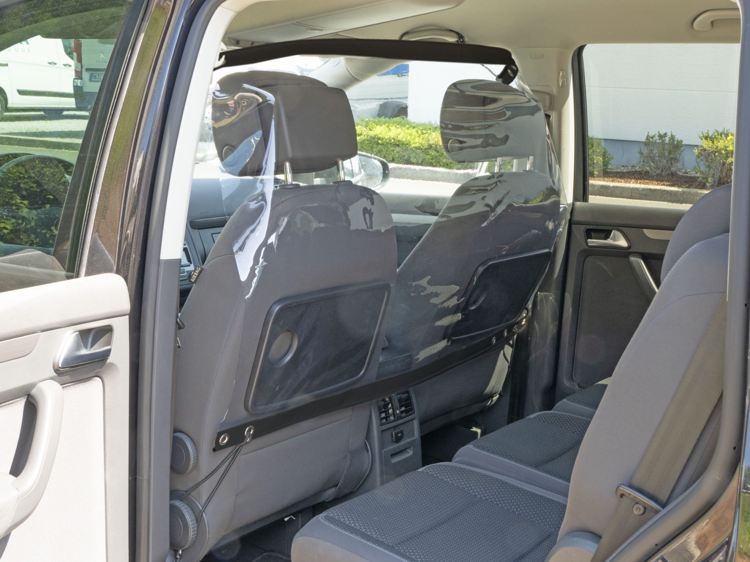 Für nahezu alle Fahrzeugtypen, darunter auch dem VW Touran, hat die Firma HJS Emission Technology aus Menden im Sauerland eine Hygiene-Schutzfolie entwickelt. Sie wird ohne Verschraubung (was auch einen rückstandslosen Rückbau garantiert) und mit Hilfe von Spanngummis an den Seiten der beiden Vordersitze fixiert, wobei die Vordersitze weiterhin verstellbar sind. HJS verspricht universelle Einsatzmöglichkeiten in Fahrzeugen wie Taxis. Mietwagen und Krankentransportern. Das Set, für das keine Eintragung nötig ist, kann noch vor Ort auf jedes Maß zugeschnitten werden.