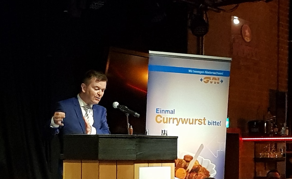 Schon zum neunten Mal hatte der Gesamtverband Verkehrsgewerbe Niederachsen (GVN) zum parlamentarischen Currywurstabend nach Hannover eingeladen. Mehr als dreihundert Gäste aus Politik und Gewerbe folgten dieser Einladung wieder gerne – wohl nicht nur wegen der leckeren Currywurst.