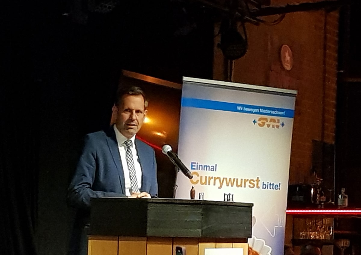 Gerade die gewollt lockere Atmosphäre im Brauhaus Ernst August schaffte auch beim ersten Currywurstabend nach Corona am vergangenen Mittwoch wieder die Basis für viele gute Gespräche, vor allem nach dem offiziellen Teil mit der Hauptrede von Olaf Lies (SPD), Niedersachsens Minister für Wirtschaft, Bauen, Verkehr und Digitalisierung. Immerhin waren neben Lies weitere rund neunzig Abgeordnete des niedersächsischen Landtages sowie Vertreter der Kammern, des Wirtschaftsrates, der Gewerkschaften, der Krankenkassen, des Bundesamtes für Logistik und Mobilität, des Bundes- und Landesarbeitsgerichts u. v. m. der Einladung des GVN gefolgt.