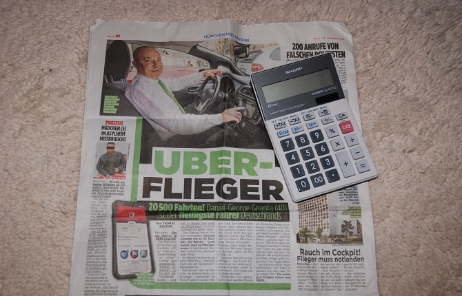 Die Bild-Zeitung hat ihre Leser in dieser Woche mit einem Bericht über Deutschlands fleißigsten Uber-Fahrer beglückt. Doch sind die Zahlen wirklich so grandios? Taxi Times hat nachgerechnet.