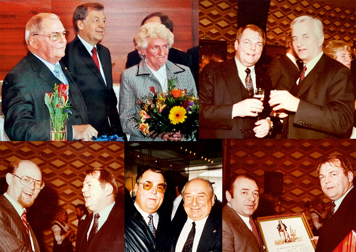 Doch nicht nur seine Bekannten aus den Gewerbeverbänden hat Heinz Peters Tod bewegt. Aufgrund seiner Ämter hatte Heinz Peter auch enge Kontakte zu zahlreichen Politikern. Das zeigen Bilder aus dem Privatbesitz der Angehörigen, entstanden auf verschiedenen Feiern, unter anderem am 14.3.1980 im Prälat Schöneberg (erkennbar an der 70er-Jahre-Tapete mit dem Rautenmuster).