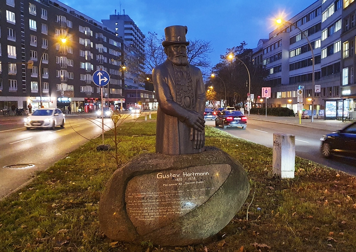 Das Denkmal für den Eisernen Gustav – es gibt nicht nur die Gedenkplakette an der Unternehmenszentrale in der Alsenstraße in Wannsee – inmitten des brandenden Verkehrs in der Potsdamer Straße – Blick auf das Kulturforum – hat Heinz Peter gegen viele Widerstände aus dem Bezirk durchgesetzt. Ich erinnere, ich mußte als Regierender „vermitteln“. Die beiden sollte man so richtig in ihren gemeinsamen Anliegen würdigen. An das Haus der früheren Berliner Wohnung von Heinz Peter gehört eine Gedenkplakette. ♦