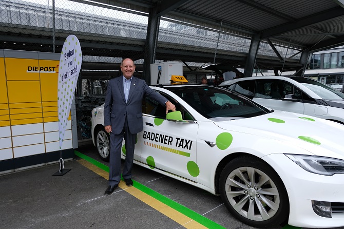 Das Badener Tagblatt berichtet von der bereits im Juni 2018 begonnenen Umstellung des Taxibetriebes ‚Badener Taxi AG‘ auf Elektrofahrzeuge. Inzwischen sind vier Limousinen der Marke Tesla im Einsatz, im September sollen zwei Großraumwagen der Marke Nissan hinzukommen, im Jahr 2023 soll dann die ganze Flotte auf Elektroantrieb umgestellt sein.