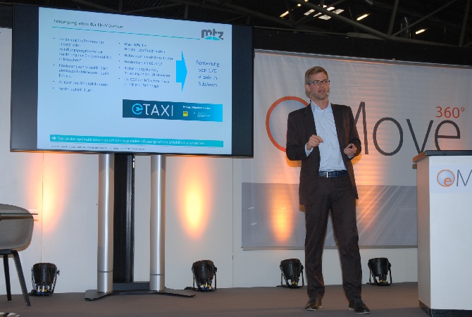 Beiner führte beim eMove-Forum vor rund 50 Zuhörern einen Faktencheck seiner Jaguar-Flotte durch. In rund zwei Monaten hätten die zehn Taxis bereits eine Fahrleistung von 100.000 Kilometern erzielt, sie seien im 2-Schichtbetrieb rund 20 Stunden im Einsatz. Zwischen den Schichten sei ein zweistündiges Zeitfenster zum Aufladen eingeplant. Dies erfolge auf dem Betriebsgelände, wo man fünf DC Schnellladestationen mit 50 kW aufgebaut hat und 100 Prozent Ökostrom verwende.