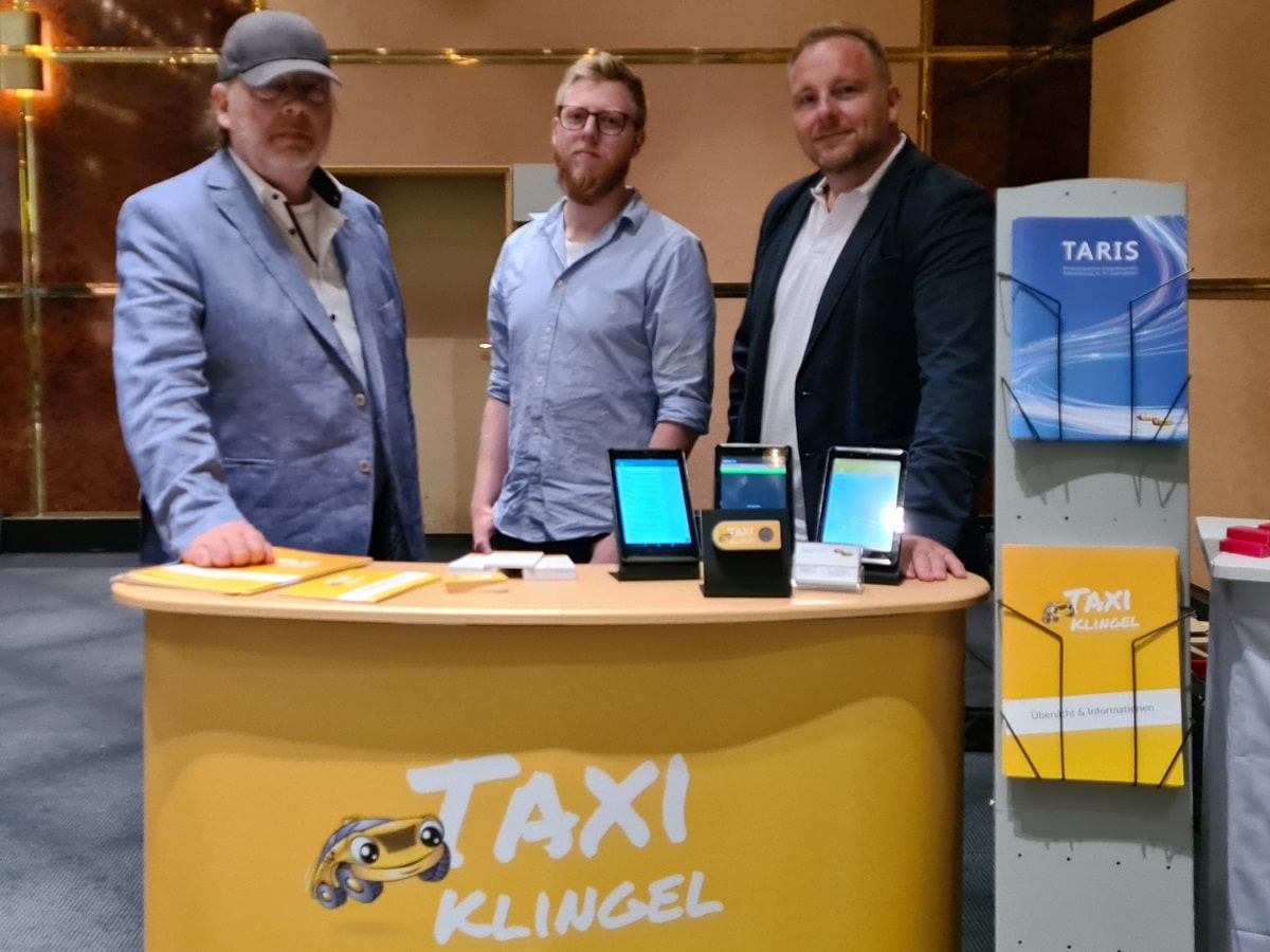 Als Partner der Telekom präsentierte die Familie Brück vom Unternehmen „best.ways“ die Taxiklingel im Rahmen der Taxi Driving Innovation vergangene Woche in Köln. Das etwa neun Zentimeter kleine Gerät nutzen Kunden von Taxi- und Mietwagenunternehmen oder von Taxizentralen anstelle des Telefons. Wird ein Taxi / Mietwagen / Kurierfahrzeug benötigt, genügt ein Knopfdruck.