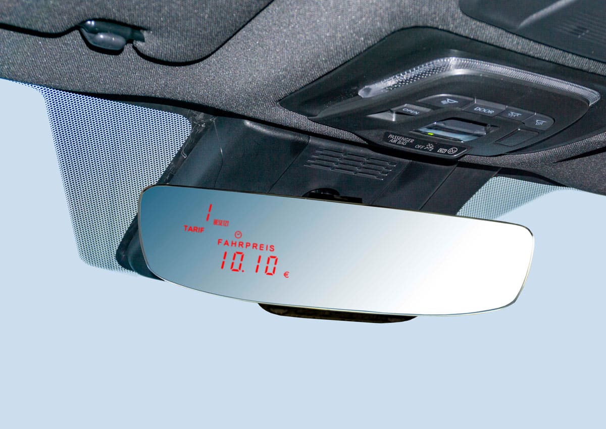 Auf Wunsch kann auch ein rahmenloser Spiegeltaxameter montiert werden. Foto: INTAX