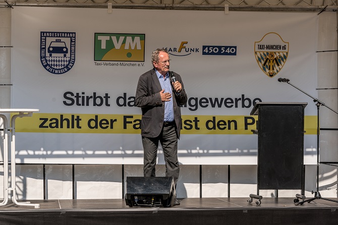 Die Münchner Taxidemo war nach Oktober 2017 bereits der zweite Straßenprotest. Damals zählte Münchens Alt-OB Christian Ude noch zu den Rednern, diesmal war der SPD-Politiker als Besucher gekommen – und sprach spontan doch noch ein paar wohlklingende Worte.