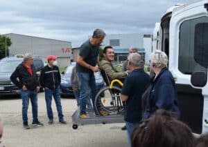 Bereits zum zweiten Mal in diesem Jahr veranstalteten die Vorstände der Interessengemeinschaft (IG) Taxi Ortenau und die Straßenverkehrsgenossenschaft (SVG) Baden eG in Offenburg einen Verkehrssicherheitstag. Unterstützt wurden die Veranstalter dabei auch vom Verband des Verkehrsgewerbes Baden e.V. und dem ASD der BG Verkehr. Ein Mitarbeiter der SVG übernahm dabei die Vorführung einer sauberen Rollstuhlsicherung im Taxi inklusive der fachgerechten Handhabung beim Ein- und Ausstieg.