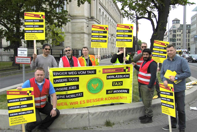 Aktuell tagt gerade die von Verkehrsminister Andreas Scheuer einberufene Findungskommission. Vor der Türe hatten sich rund zehn Taxiunternehmer zu einer Mahnwache aufgestellt.