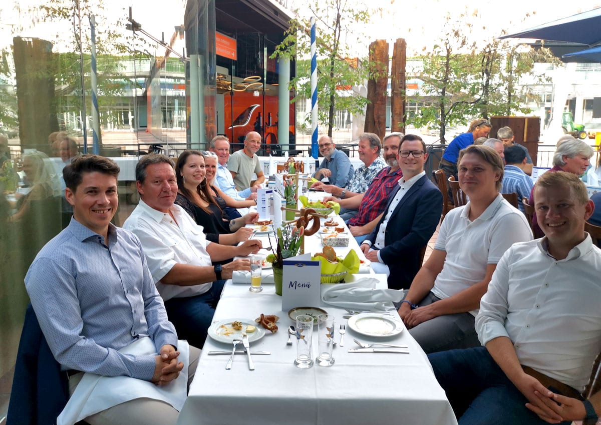 Zur Feier dieses Jubiläums hatte der Flughafen den Taxipartner zu einem gemeinsamen Abendessen eingeladen. Mit dabei waren Peter Bayer und seine Mitarbeiter*Innen aus der Abteilung Geschäftsbereich Commercial Actvities Services und Parken der FMG. Von IsarFunk-Seite waren der Geschäftsführer Christian Hess und dessen Mitarbeiter sowie weitere Gäste erschienen.