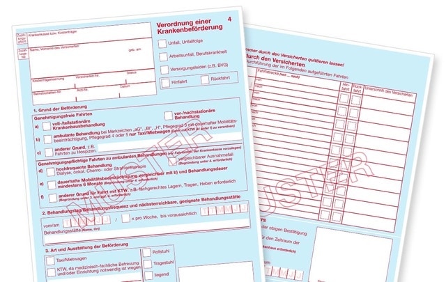 Neu ist im neuen Vordruck auch, dass bei genehmigungsfreien Fahrten zukünftig auf die Angabe des Behandlungstages verzichtet werden kann, wenn dieser nicht bekannt ist. „Dies kann zum Beispiel dann in Betracht kommen, wenn beim Hausbesuch die Notwendigkeit eines Facharztbesuches festgestellt wird oder eine Terminvergabe über die Terminservicestelle erfolgt“, nennt der Bundesverband ein konkretes Beispiel.