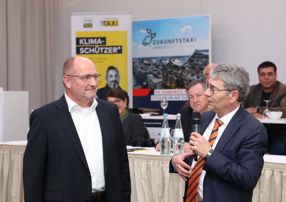 Die Zeiten haben sich geändert, die Problemfelder und Aufgaben seien komplexer geworden, wodurch sich auch die Kultur des privaten Miteinanders reduziert habe. Bei den absehbaren Veränderungen der Mobilität müsse sich das Gewerbe neu definieren und aufstellen. „Bitte sehen Sie auch die Chancen, die im Rahmen der notwendigen Neustrukturierung des Verkehrs für das Taxi- und Mietwagengewerbe entstehen“, appellierte er an die Taxivertreter. Der Weg zu emissionsfreier Mobilität ist steinig, aber alternativlos. Das Zeitfenster ist sehr eng.