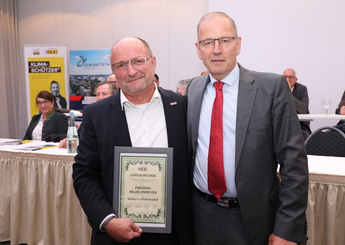 Am Schluss gab es minutenlangen Applaus und Standing Ovations sowie als höchste Verbandsauszeichnung die goldene Ehrennadel. Verdient hat sich Wilhemsmeyer diese aufgrund seines 24-jährigen Wirkens für die Taxibranche. Mit seiner Abschiedsrede hat er bewiesen, dass er sie völlig zurecht erhalten hat. jh