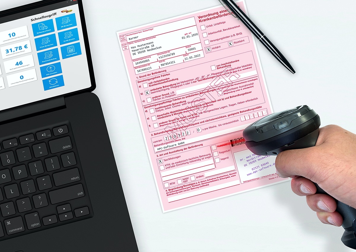 Letztere hat ihr Vermittlungs- und Abrechnungstool TARIS um die Funktion „TARIS Ambulance“ erweitert. Damit kann der auf den Krankentransportscheinen angebrachte Barcode gescannt werden. Die Daten werden dann von der Software selbständig in die dafür vorgesehenen Felder übertragen und stehen zur Nachbearbeitung und zum DTA-Versand zur Verfügung.