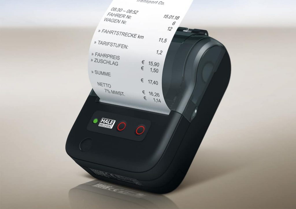 Wie der Salzburger Taxameterhersteller heute mitteilt, wurde der Thermopapierdrucker sowohl vom Kraftfahrt-Bundesamt (KBA) nach ECE-R10 als auch von der Physikalisch Technischen Bundesanstalt (PTB) zugelassen. Er erfüllt laut Herstellerangaben zahlreiche Funktionen und erleichtert den Alltag im Taxi. Der Papierwechsel der Quittungsrolle beispielsweise sei laut Hale „so einfach wie nie zuvor.“ Man müsse dazu einfach nur den Deckel öffnen, die von bisher 12 auf nunmehr 15,5 Meter verlängerte Papierrolle einlegen und den Deckel wieder schließen. Ein umständliches Öffnen des Gerätes oder kompliziertes Einfädeln des Papiers sei nicht mehr nötig. Das Thermopapier selbst ist extra-beschichtet und hält dadurch für die gesetzlich vorgeschriebene Aufbewahrungsfrist von zehn Jahren.