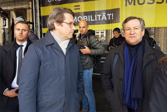 14:41 Uhr: Verkehrsminister Andreas Scheuer hat seine Ankündigung eingehalten und ist zur Kundgebung erschienen. Diese wird allerdings mit Verspätung starten. Hier wartet der Minister zusammen mit Bundesverband Vizepräsident Hermann Waldner.