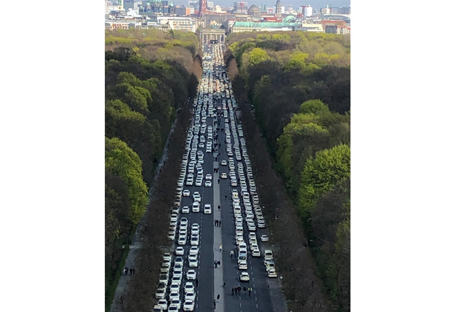 Wir verabschieden uns mit beeindruckenden Fotos von der Straße des 17. Juni, die am 10. April ganz und auschließlich den Taxis gehört hat.