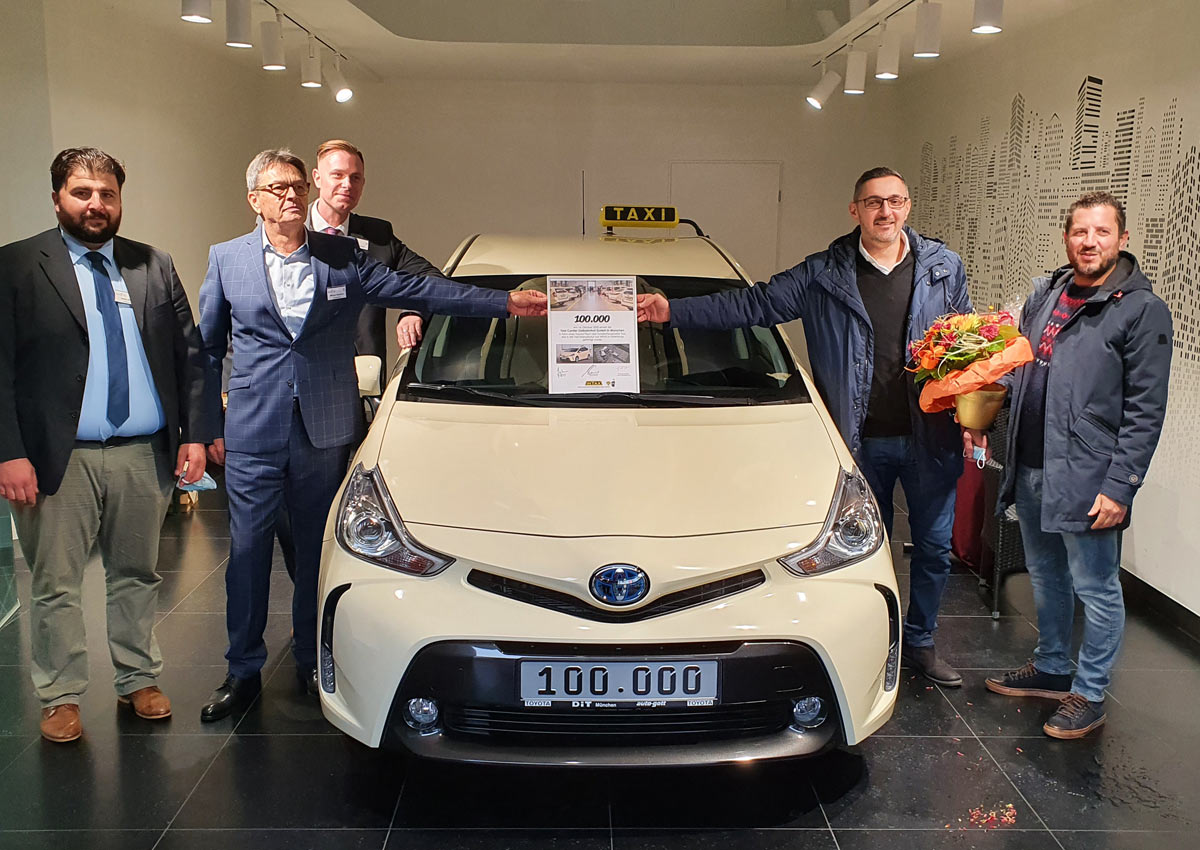 Neben den beiden neuen Besitzern eines der letzten gebauten Prius+, Ünal Kücüksahin und Deniz Köse, waren bei der feierlichen Übergabe zudem die Vorstände Jörg Wohlfahrt und Ferdi Akcaglar von der Taxi München eG bzw. der Taxi Augsburg eG anwesend. Vom ADAC Südbayern e.V. konnte das Autohaus Florian Hördegen begrüßen.