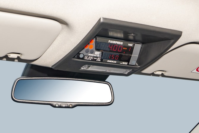 Tavan döşemesindeki bir konsol taksimetre için özel olarak yapılmıştır. Fotoğraf: Intax