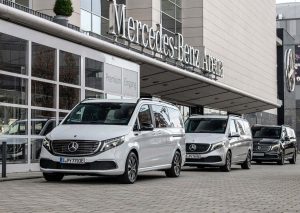 Eine maximale Reichweite von rund 400 Kilometern macht den EQV zu einem interessanten Fahrzeug für alle Unternehmer, die auf der Suche nach einem elektrischen Großraumtaxi sind. Bereits im Juni soll der Wagen auch mit Taxipaket bestellbar sein. Der EQV kann dann wahlweise mit oder ohne Taxi-Notalarmanlage zusammengestellt werden. Preise für das Taxipaket sind derzeit leider noch nicht bekannt.