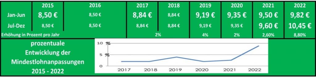 Die Daumenschrauben werden angezogen, die Mindestlohnkommission empfiehlt eine jährliche Lohnerhöhung von je 5,7 Prozent für die kommenden zwei Jahre, all das in vier Schritten (siehe Grafik), allerdings – wohl coronabedingt – zumindest mit einem relativ soften Start. Der große Schritt kommt dann erst zum Schluss, und das ist auch gut so, denn das gibt endlich mal etwas mehr Zeit für die Umsetzung und somit zumindest etwas mehr Planungssicherheit für unser Gewerbe. Trotzdem sind 11,44 Prozent Lohnerhöhung innerhalb der kommenden zwei Jahre natürlich ein deftiger Schluck aus der Pulle … und ein Ende ist da wohl noch nicht in Sicht, wenn man den vollmundigen Statements derjenigen trauen darf, die den Mindestlohn nicht selbst finanzieren müssen.