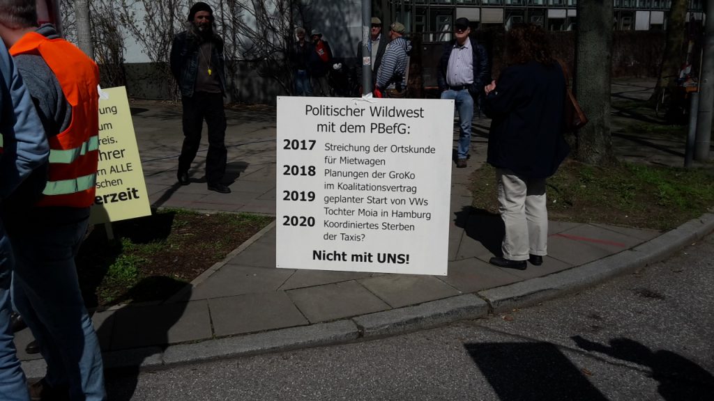 Grün hebt gleichzeitig hervor, dass der Kampf gegen Moia nur ein Aspekt des größeren Problems sei. Bei der Novellierung des Personenbeförderungsgesetzes im Sinne des Gewerbes aktiv zu sein sei zwar wichtig, aber die größte Gefahr sei letztendlich die Beherrschung der urbanen Transportmärkte der Zukunft. Noch wollten die großen Anbieter sich mit konzerninternen Subventionen Marktanteile kaufen, um später „den Kunden auszunehmen wie eine Weihnachtsgans,“ so der HTV-Vorsitzende. Dies sei ihnen nämlich dann möglich, wenn sie eine marktbeherrschende Stellung einnehmen würden. Gleichzeitig würden sie dann auch die Arbeitsmärkte beherrschen, Löhne und soziale Standards diktieren können, sagte er bereits auf der Kundgebung im April.