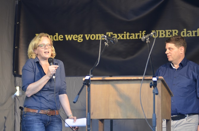 Natascha Kohnen tritt für die bayerische SPD als Spitzenkandidatin der kommenden Landtagswahl an. Trotz eines vollen Wahlkampf-Terminkalenders nahm sie sich Zeit, um bei der Nürnberger Taxidemo zu sprechen und sich klar auf die Seite der Taxiunternehmer zu schlagen.
