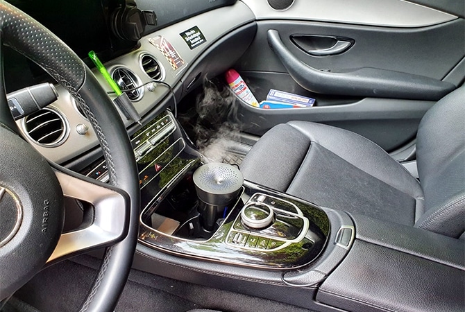 Eine weitere Möglichkeit zum Schutz vor Viren im Taxi neben den bekannten Methoden wie Trennschutz, Mund-Nasen-Bedeckung und Oberflächenreinigung ist das Verströmen eines feinen, virentötenden Nebels im Innenraum.