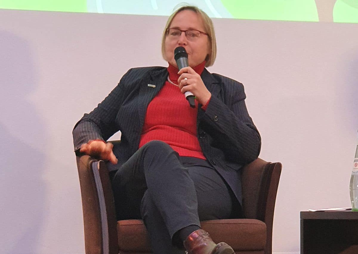 Die Einleitung in das Thema hielt Kerstin Haarmann, Bundesvorsitzende des Verkehrsclubs Deutschland (VCD), einem ökologisch ausgerichteten Verein, der sich für die Verkehrswende einsetzt. Getreu dieser Ausrichtung stellte Haarmann zu Beginn klar, dass die Verkehrswende nicht mit der Decarbonisierung des Straßenverkehrs getan ist. Vielmehr müsse der Mensch mit seinen Bedürfnissen im Mittelpunkt stehen. Eine der großen politischen Herausforderungen bestehe darin, dass Deutschland mehr ÖPNV benötige und zu viele Autos habe. Die für die Verkehrswende notwendige Veränderung hin zu weniger Autos komme dem Taxigewerbe zugute, da private Autobesitzer weniger Taxi fahren.