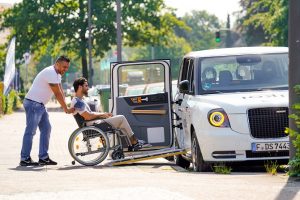 Anders als Fahrzeughersteller, die mit ähnlichen Projekten (Moia, Via) auf eigene Fahrzeuge setzen (VW, Mercedes), ist die Bahn nicht markengebunden – und hat sich bezeichnenderweise gegen einen deutschen Hersteller entschieden. Beim Hamburger Pilotprojekt kommen zehn LEVC-Fahrzeuge zum Einsatz. Das sind die Nachfolge-Modelle der so genannten London-Taxis. Sie fahren elektrisch (ergänzt um einen benzinbetriebenen Reichweitenverlängerer/ Range Extender) und bieten bis zu sechs Personen Platz. Oder eben auch einem Rollstuhlfahrer, was wiederum für die örtlichen ÖPNV-Anbieter sehr wichtig ist.