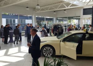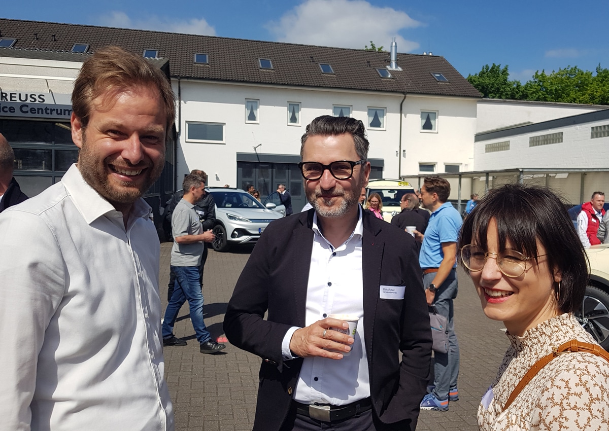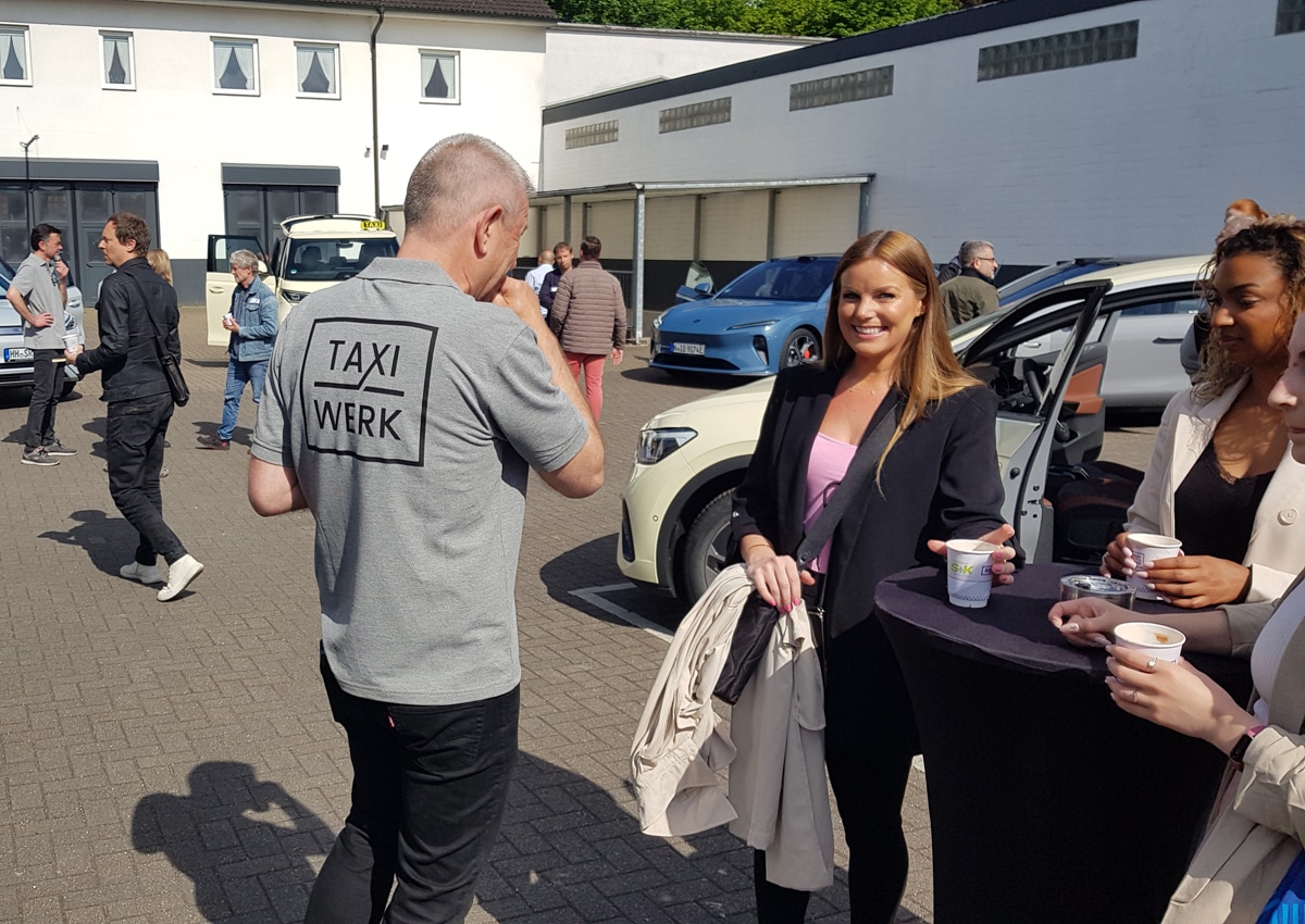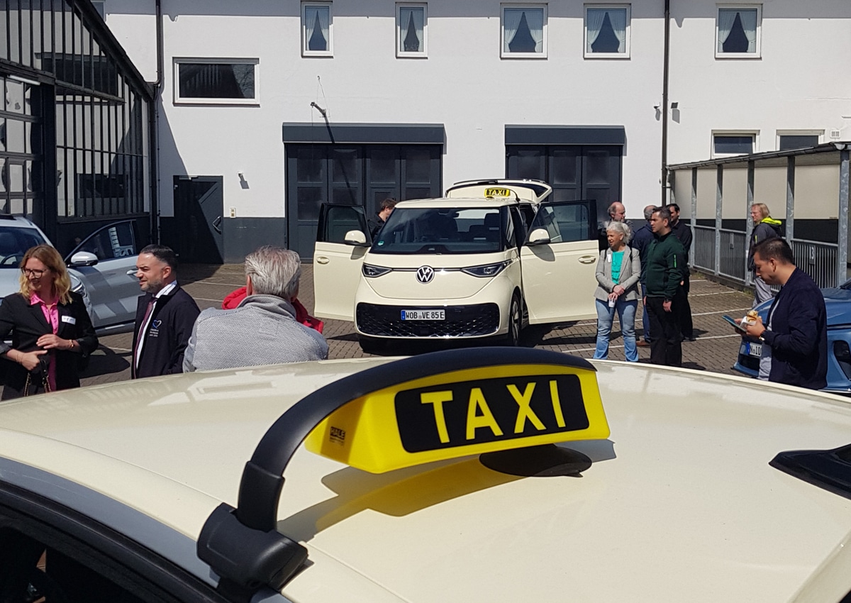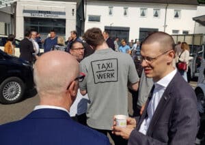 Der E-Taxi-Spezialbetrieb ist von Beginn an Partner der Hamburger E-Taxi Förderung und zeichnete sich in der Vergangenheit für fast alle Umrüstungen von VW-E-Taxis verantwortlich. In Ihrer neuen Taxischmiede am Schiffbeker Weg wollen Andreas Köppen und Felix Brandt Verkauf, Folierung und technische Umrüstung verschiedener E-Taxi-Modelle nun an einem Standort konzentrieren. Zur Veranstaltung konnte eine mehr oder weniger vollständige Palette der möglichen E-Taxi Modelle sogar inklusive des neuen VW ID. Buzz als Taxi präsentieren.