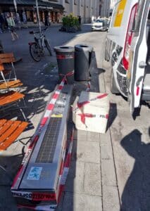 In der Münchner Altstadt nahe dem Marienplatz hat kürzlich ein Busfahrer seinen Reisebus abgestellt und offenbar versäumt, die Handbremse sorgfältig anzuziehen. Das schwere Fahrzeug setzte sich unbemerkt rückwärts in Gang. Dabei überrollte der Bus eine Rufsäule am Taxistandplatz „Tal“. Sie wurde vollständig aus der Betonhalterung gehoben und im wahrsten Sinn des Wortes flachgelegt. Der Bus kam danach glücklicherweise zum Stehen, ohne weiteren Schaden anzurichten. Der Sachschaden an der Säule ist dagegen beträchtlich. Er liegt laut Einschätzung des Rufsäulenbetreibers, der Taxi München eG, bei mindestens 10.000 Euro.