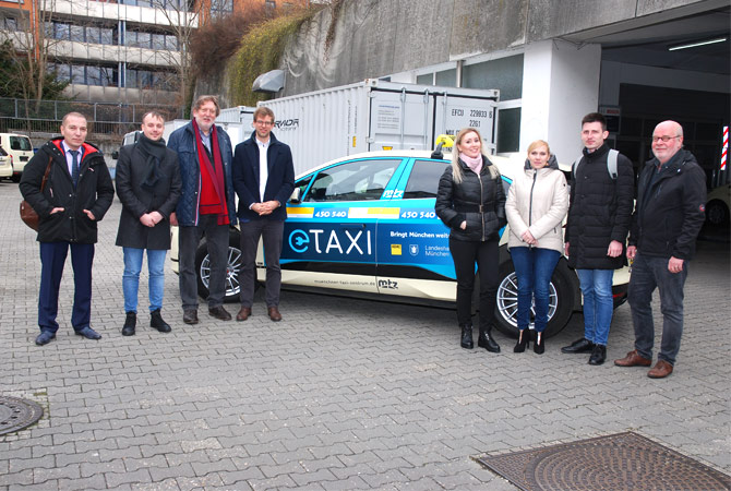 Vom beschaulichen Karlsruhe ging es anschließend wieder in eine Millionenstadt. In München traf die Delegation auf den Mitorganisator Gregor Beiner, einen weiteren sehr zukunftsgewandten Taxiunternehmer, der mit über 80 Taxis die größte Taxiflotte der bayerischen Hauptstadt betreibt. Zehn dieser Fahrzeuge fahren rein elektrisch, der Rest mit Hybridantrieb. Geladen wird an betriebseigenen Schnellladesäulen. Welche Co2-Emissionen man dadurch im Vergleich zu dieselbetriebenen Taxis einspart (60 Prozent), erläuterte Beiner anhand einer englischsprachigen Präsentation.