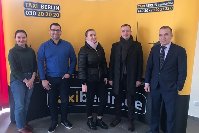 Tag 1 begann in Berlin, wo man zunächst das Taxizentrum Berlin besuchte, in dem mit Taxi Berlin auch eine der größten europäischen Taxizentralen und mit taxi.eu die größte echte Taxi-App beheimatet ist. Gesprächsinhalte während des Rundgangs durch Kundencenter, Callcenter und Taxi-Museum waren unter anderem App-Vermittlung und digitale Zahlungsarten in Mitteleuropa im Vergleich zu Russland, die Arbeitsweise, Bestellmöglichkeiten und Tarife des Taxigewerbes in Russland, außerdem verkehrspolitische Themen wie Ridesharing. Auch für Anekdoten über öffentlichen Verkehr in Russland einschließlich kurioser Platzkartenregelungen in Liegewagen russischer Fernzüge bot die entspannte Gesprächsatmosphäre Raum.