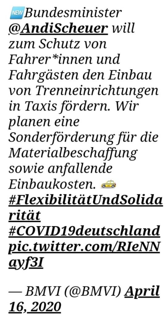 Sadece sekiz hafta önce, taksicilerin kendilerini Korona virüsü bulaşmasından en iyi nasıl koruyabilecekleri konusunda büyük bir belirsizlik vardı. Koruyucu maskelere ve tek kullanımlık eldivenlere ek olarak, şeffaf kabin takside de kendini kanıtlamıştır.