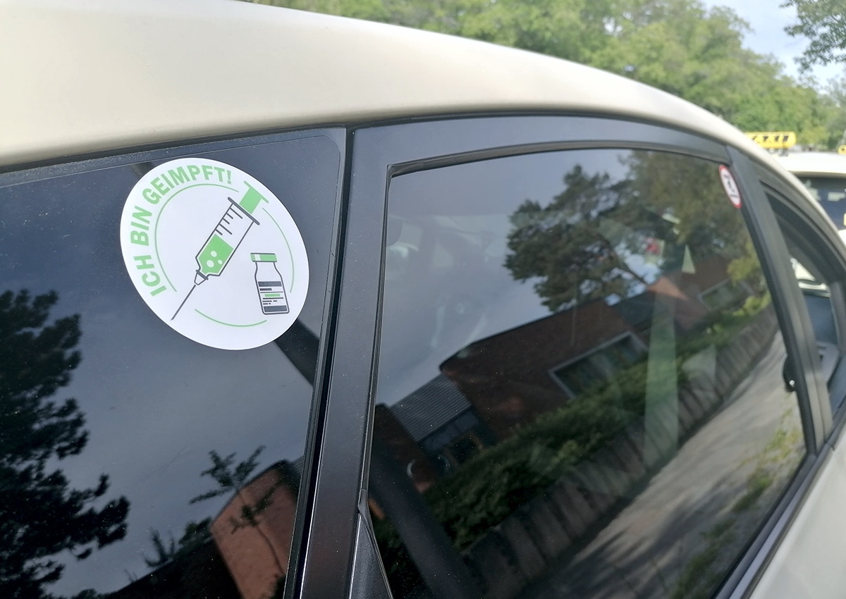 Noch sei nicht bekannt, wie viele Taxifahrer*Innen bereits geimpft oder genesen sind. Die Taxiunternehmer*innen hätten in den zurückliegenden Monaten zehntausende Fahrten mit Impflingen zu den Impfzentren durchgeführt, was trotz der vielen damit verbundenen Kontakte bei der Impfpriorität nicht entsprechend honoriert worden sei. Immerhin seien alle, die am Impfzentrum am Messegelände in Berlin-Westend für die Organisation der An- und Abfahrten zuständig sind, bereits geimpft. Aber nun blicke man nach vorne und zeige dies auch mit den Aufklebern.